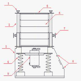 6、篩 具 7、緊定手柄 8、指示面板 9、振動(dòng)電機(jī)