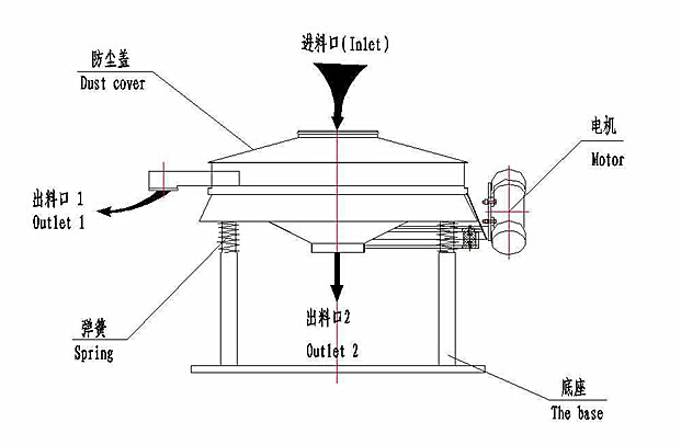 產(chǎn)品特點:將振動電機的旋轉運動變?yōu)樗健⒋怪?、傾斜以及離心作用的多作用力重疊,再將這種作用力傳遞給篩面。